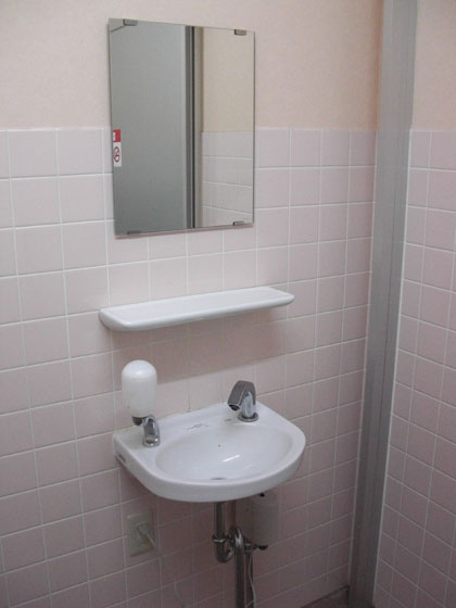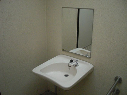 多目的トイレ内の洗面台にも石鹸は用意して欲しいところ。