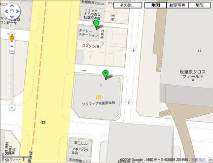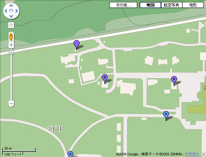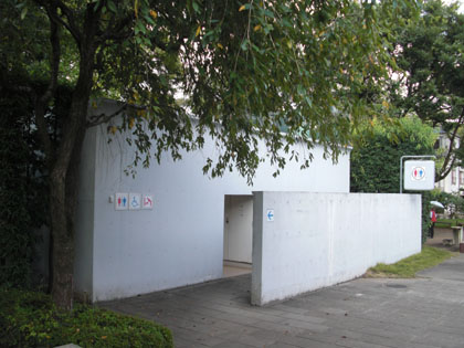 上の地図に3つ見える青紫色のピンの一番左側のトイレですが、