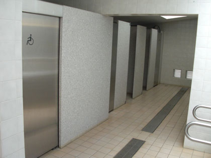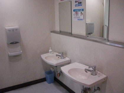 東ゾーントイレ(マークからオムツ台があることがわかるが、男性用トイレにはないようだ)