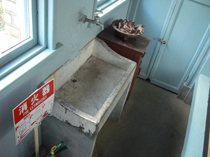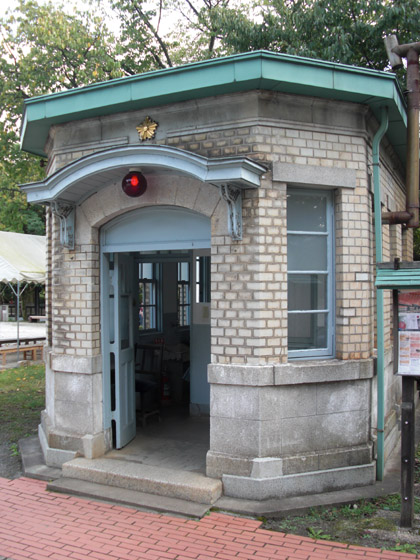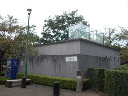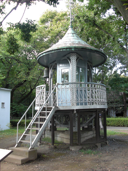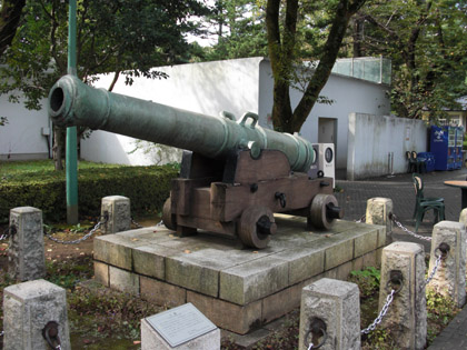 午砲(東京の空に正午の時刻お知らしていた大砲)とセンターゾーントイレ(後ろ)