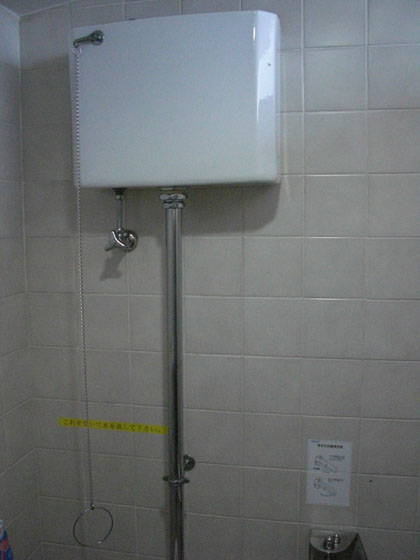 多目的トイレのタンクは天井付近とハイな場所にあるので、