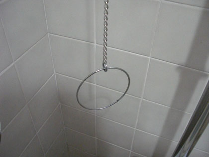 その洗浄はコックからぶら下がってる吊り輪を引いて行います。