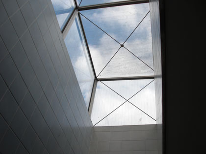 ちなみに洗面台の天井は高く、ガラス張りになっておりまする。