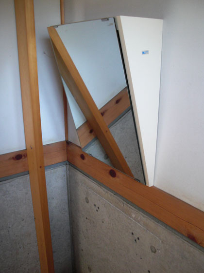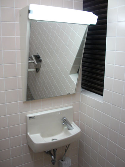 どういうわけか洗面台のある場所とは別の位置に設置されています。