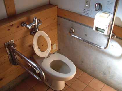 トイレの入り口がさほど広くない駐車場スペースの奥に位置するため、車の出入りが激しかったりする場合には、ちょっとその利用が車椅子の人にはめんどくさいかもしれません。