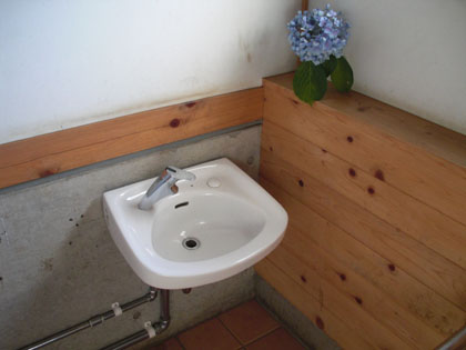 共用トイレには洋式便器と小さな手洗い、トイレットペーパーも用意されてます。