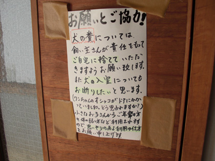あと、この公園のトイレも犬の入室は禁止のようで、犬の糞の始末は飼い主さんの責任をもってご自宅で捨てていただくようにと、トイレのドアの張り紙に記述されております。