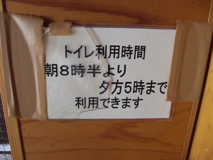 ここのトイレが利用できる時間帯は朝8時30分から夕方17時まで。