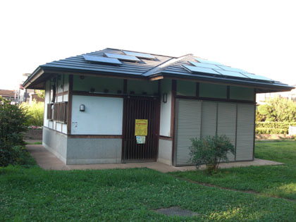 集会とかに使ってそうな建物がこの公園中央付近にありまして、トイレはその建物に併設されております。