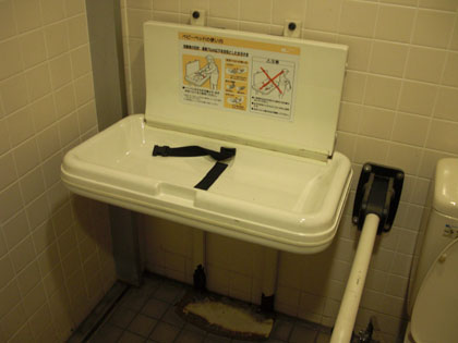 多目的トイレにはオムツ台も用意されていますが、使用済みオムツを捨てられる場所はないです(さすがにクズ入れに捨てるのはマズイでしょう)。