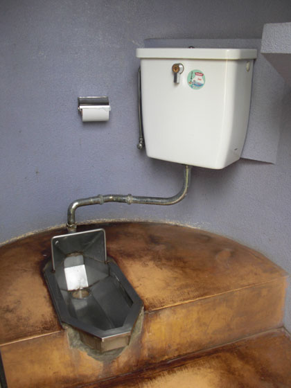 こういった和式トイレの便器を一段高いところに置くわけは、男性の小用を考えてのことです。