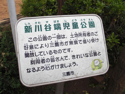 この公園は三鷹を流れる新川から一歩奥に入ったわかり難いところにありますので見つけるのがちょっと大変かも知れません。