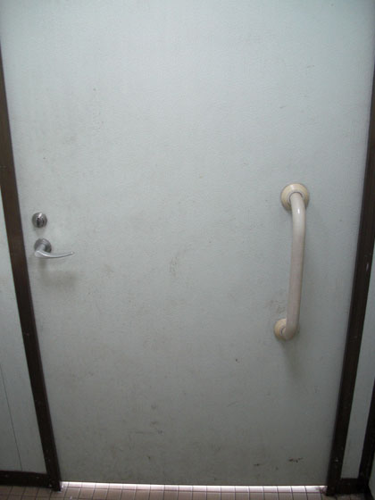 入り口のドアは開き戸なので、多目的トイレのドアとしてはいま一つでしょう。