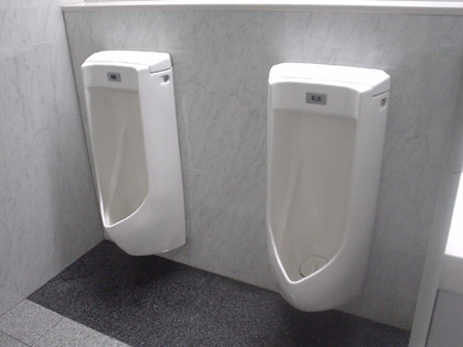 内装その壁の装いを見ると、なるほど美術館のトイレですね。