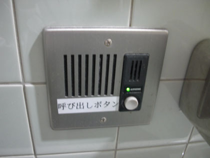 多目的トイレの緊急ボタンは、会話もできるインターフォン。