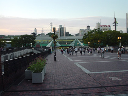 京王および小田急の多摩センターから伸びる幅の広い空中遊歩道。