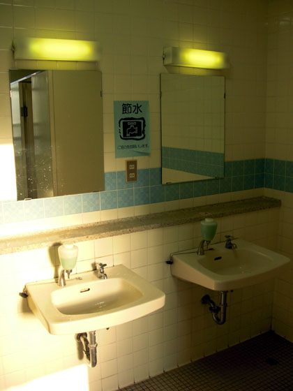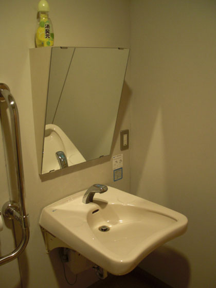 洗面台は自動水栓で、一般トイレと違い石鹸が置かれていませんですな。
