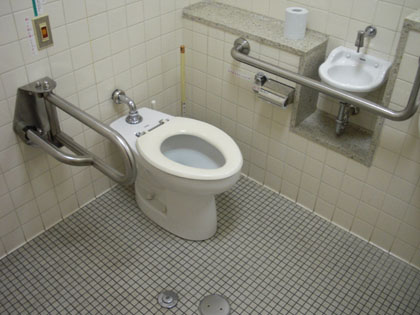 続いて多目的トイレの様子ですが、その中の様子は一般のトイレと比べ小奇麗な印象を受けます。