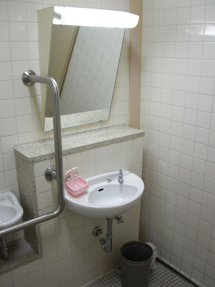 トイレとしては悪くもないのですが、多目的トイレにもうちょっと装備(オストメイトやオムツ台etc.)が欲しいところです。