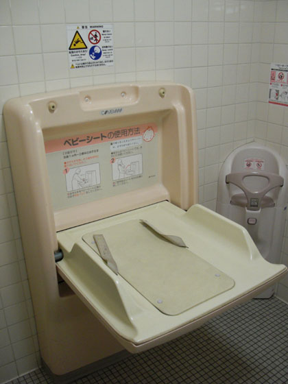 多目的トイレに、オムツ台やベビーキープがあるところ、それだけが良しってだけのトイレですかね。使用済みのオムツを捨てられるゴミ箱なんかがあれば便利かと思います。
