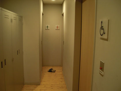 この建物は土足厳禁、入り口でスリッパに履き替えての入場となります。