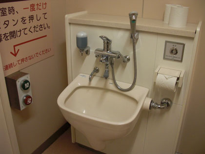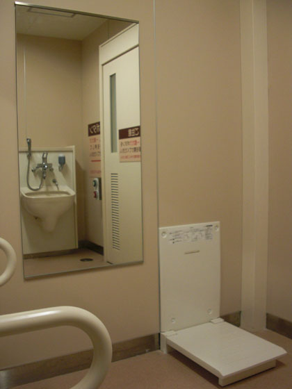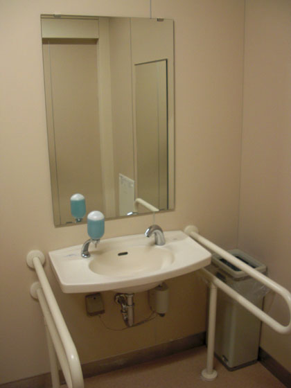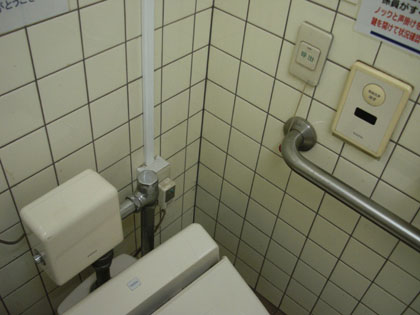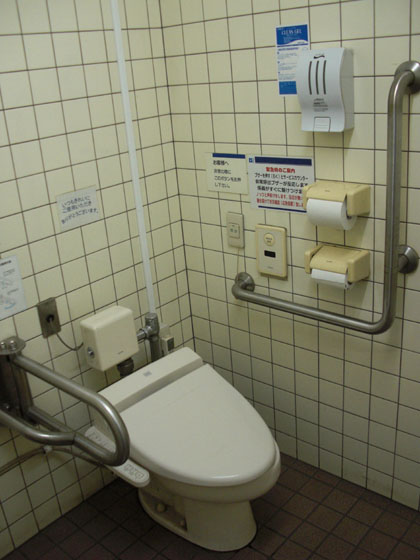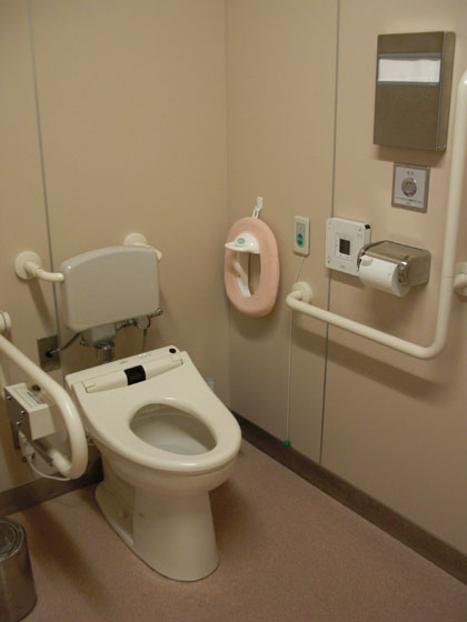 シャワーヘッド付き、温水対応オストメイト専用便器も設置されているので、ココの多目的トイレはとても良い評価を与えてもかまわないでしょう。