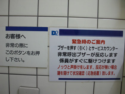 緊急ボタンを押すと係員がすぐに駆けつけ、ノックと声かけをするそうだ。