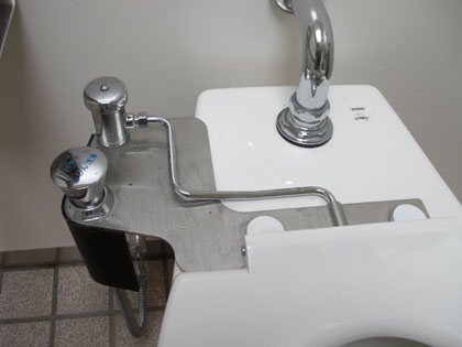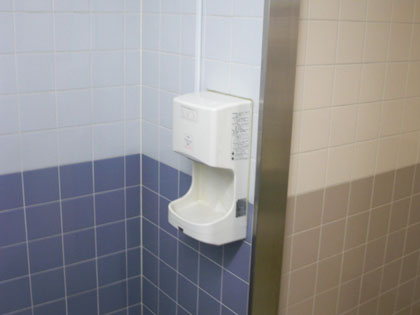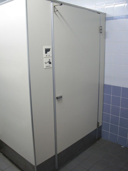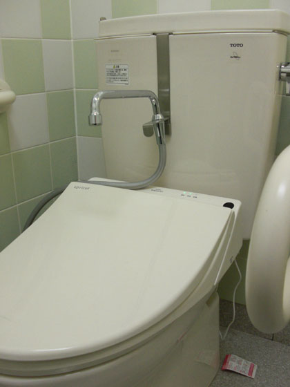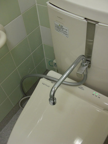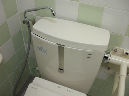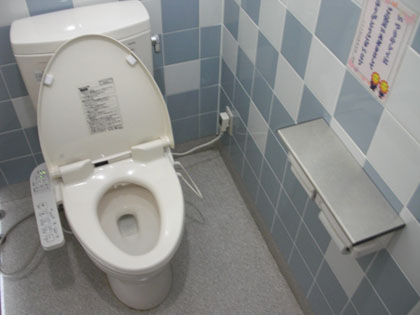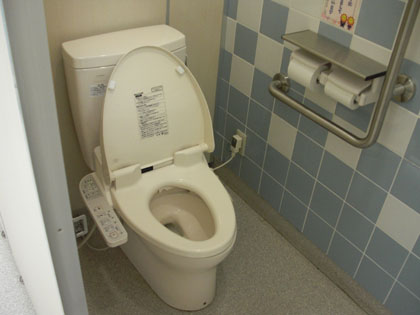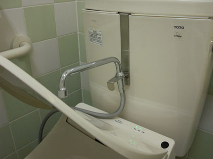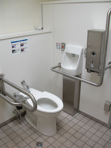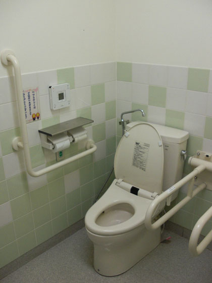 手すり付き洋式個室の方は、一応多目的トイレ仕様。