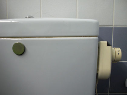 便器の洗浄は手動でタンク横のツマミを回してください・・・・・・