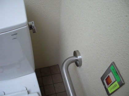 多目的トイレにある物は紙と緊急ボタン、