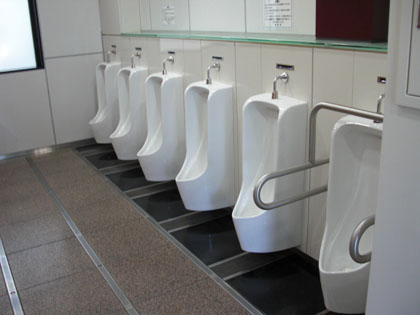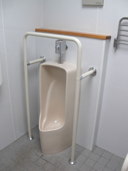 手すり付きの小用便器が、オストメイト専用便器の隣りにあるんですよね。