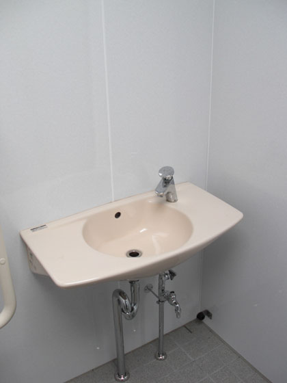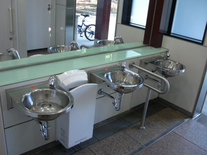 このトイレにはオストメイト専用便器が設置されているので、利用者の中にはこちらの水栓で手を洗う人が少なからずいるような気がします。