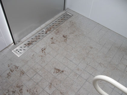 この細いレールのような側溝が、「換気」「排水」「散水」の三位一体攻撃による極楽浄土をトイレにもたらしているわけです。