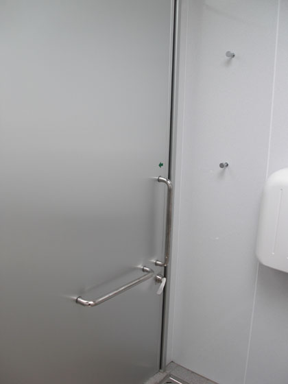 狭い個室トイレの開き戸(内開き)にありがちな出入りの苦労、中に入ってのドアの開け閉めに難儀させられることはありません。
