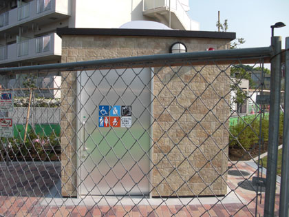 この近くにはいくつか公園があり、それら公園にもトイレは設置されていますが、このトイレは橋のたもと、川沿いの遊歩道脇にあるので周辺住民の利用を問わず繁盛しそうな感じです。