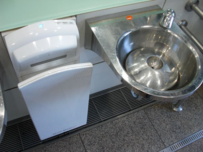 洗面台にはエアータオルもあるので、手を合わせに来観される参拝者の方々の心に水をさすことはなさそうです。