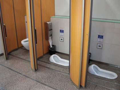 ここのトイレの緊急ボタンは、解除ボタンがすぐ隣りにあり、間違って押しても慌てふためかずにすみそうですな。