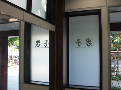 和式トイレの外壁には和式便器のアイコンシールが貼ってあり、