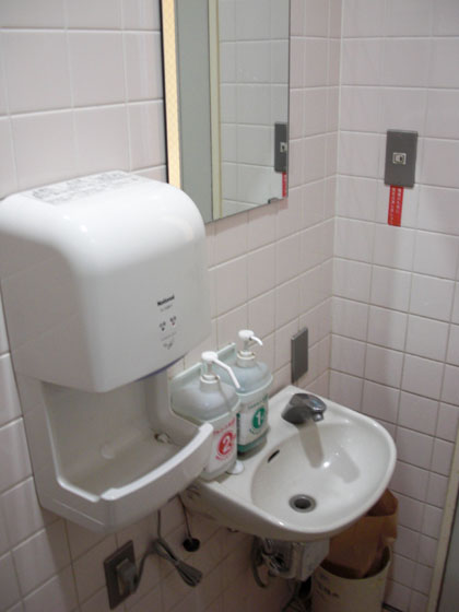 ここのトイレは基本、洗面台には石鹸とエアータオルがデフォルト装備となっています。