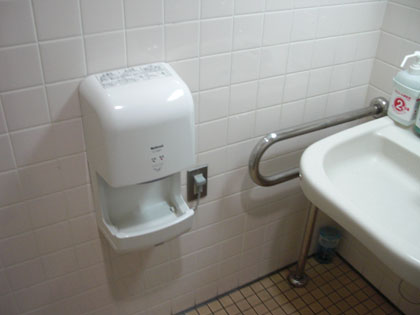 その“高さ”はいいとしてもエアータオルのその設置場所が、左側の手すりを使う場合には邪魔な感じがしないでもありません。