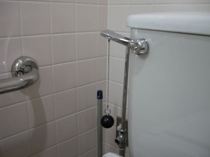 洗浄レバーは背面にありますが、チェーンタイプなので後ろ手でも何とかいけます。