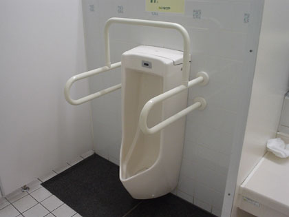 この施設の多目的トイレは壁で区切られているとはいえ、空間的にいえば男性用トイレとのシェア状態。