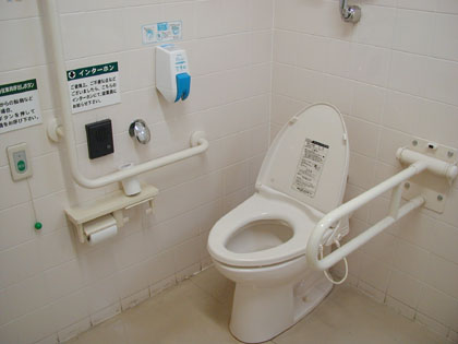 一般の多目的トイレと比べるとそのスペースはちょっと狭いかもしれません。
