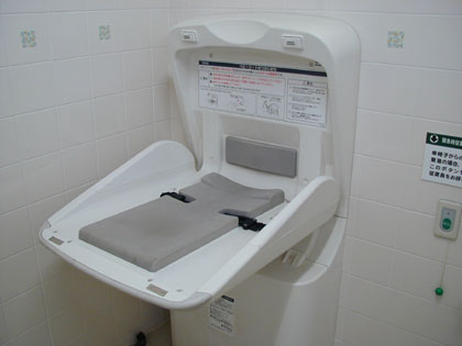 ベビーキープはありませんが、多目的トイレにはオムツ台が設置されています。