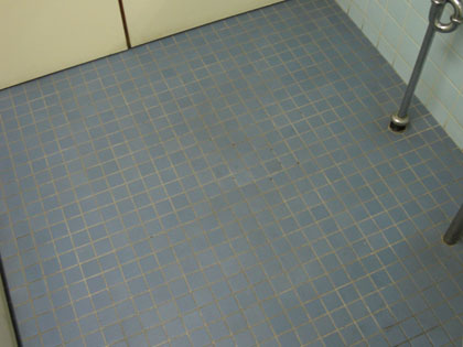 和式便器はひび割れたことがあるのか修繕の跡が見て取れますね。