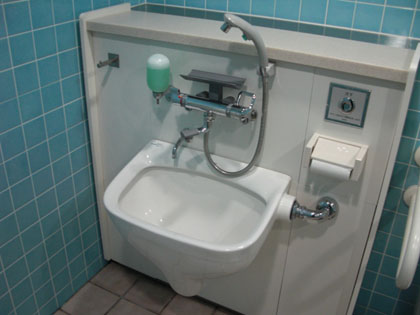 なにせトイレの中は横長で洗面台が遠いから、こうした配慮はやるべきです。