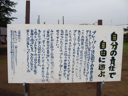 この公園の掟 「自分の責任で自由に遊ぶ(事故は自己責任)」