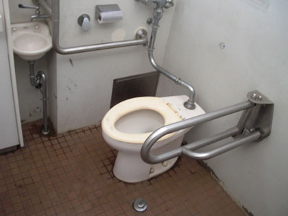 一般トイレともどもそれなりの経年ぶりが窺える多目的トイレではあります。