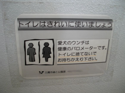 どうやら公園のトイレに散歩中の犬のフンを捨てることは、三鷹市では推奨されていないようです。