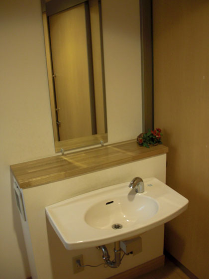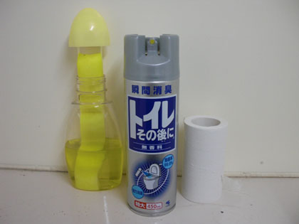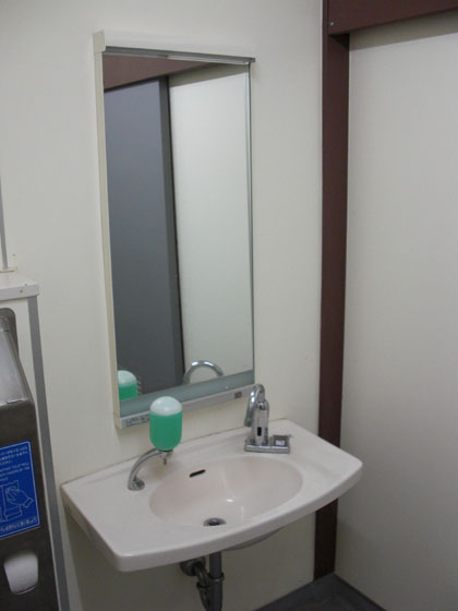 入って右手には液体石鹸と消臭スプレーの置かれた洗面台があり、